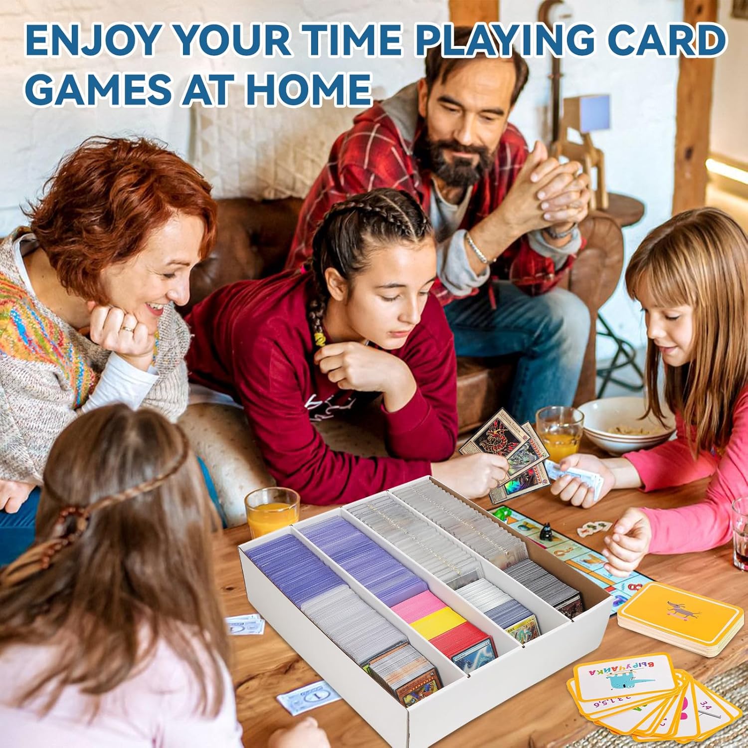- 【HOLDS 3120 TRADING CARDS OR 800 STANDARD 3''X4'' 35PT TOPLOADER CARDS SLEEVES】You will get 6 set trading card storage box, every large capacity card sorting tray has 4 compartments, which are designed to facilitate classified storage. Each card box compartments can storage 780 standard size cards or 200 standard 3''x4'' 35PT toploaders cards sleeves. Each gaming card box can store a total of 3120 trading cards or 800 standard 3''x4'' 35PT toploaders cards sleeves.
